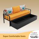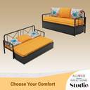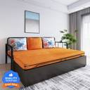 Flipkart Perfect Homes Studio With Storage 3 Seater Double Metal Pull Out Sofa Cum Bed (Finish Color - Orange with Printed Cushion Delivery Condition - Knock Down)