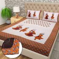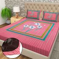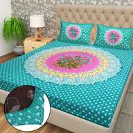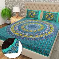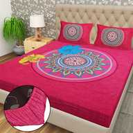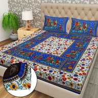 Flipkart SmartBuy Cotton Double Fitted (Elastic) 104 TC Jaipuri Prints Bedsheet (Pack of 1, Multicolor-61)