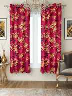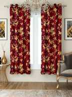 Flipkart SmartBuy 150 cm (5 ft) Window Polyester Semi Transparent Curtain (Pack Of 2) (Maroon, Floral)