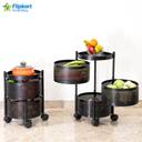 -> The metal trolley rotating kitchen trolley rotates freely 360° with vegitable stored stand universal rollers at bathroom storage , which help the cart can move freely and turn effortlessly stop the cart in small spaces. Easy to clean, just wipe it with a wet towel.4th generation rotating kitchen rack vegetables stand for kitchen onion stand kitchen vegetable stand onion rack avaiable now .