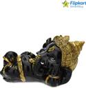 Flipkart SmartBuy Lord Ganesha Reclining| lord ganesha idol car dashboard| beautiful ganesha statues| ganesha Idols of God| ganesh idol in Spiritual & Festive Décor|Meditating Ganesh murti |Ganesh ji ki murti|ganpati |Statue of gods| "You must like it Go for it See The Review" Decorative Showpiece - 14 cm (Polyresin, Black, Gold)