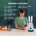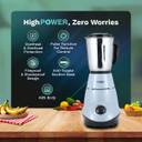 This mixer grinder comes with a 1.2 L liquidizing jar, a 1.0 L grinding jar and a 0.4 L chutney jar to meet the dry and wet grinding requirements in your kitchen. You can prepare a variety of foods to suit your needs, including smoothies, curry sauce, ground coffee, and frozen drinks.