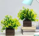Flipkart SmartBuy Set of 2 For Home Office, Table top Bonsai Artificial Plant with Pot (16 cm, Green)