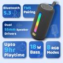 SnapUp Stone MAX Upto 9H TYPE C ACOUSTIC STEREO SOUND RGB 55mm DUAL DRIVER TWS FEATURE 18 W Bluetooth Speaker (Lit Grey, Stereo Channel)