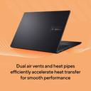 The Vivobook 16 laptop's IceBlade fan and dual air vents effectively speed up heat transmission for consistent, smooth performance without CPU slowdown in any situation. This allows you to play uninterrupted for long stretches of time.
