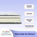 1.Reversible Design: The mattress is reversible, allowing users to choose between two sleeping surfaces for added versatility and longevity. 2.2-Layer Construction: It features a 2-layer design, with a honeycomb fabric layer for breathability and comfort, coupled with a latex foam layer for pressure relief and support. 3.High Resilience (HR) Foam: The mattress utilizes high resilience foam, known for its durability and ability to bounce back to its original shape, ensuring long-lasting comfort and support. providing a plush sleeping surface. 4.Orthopedic Support: Designed with orthopedic principles in mind, this mattress aims to provide proper spinal alignment and support for a restful night's sleep.