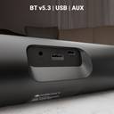 Offering versatile audio options, this soundbar ensures smooth connectivity with BT v5.3 and supports playback through USB and AUX.