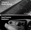 This Zebronics soundbar features media and volume controls for simple audio management, alongside dual passive radiators that deliver deep bass and clear, balanced sound.