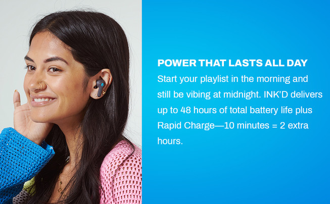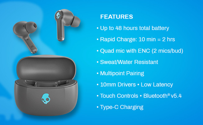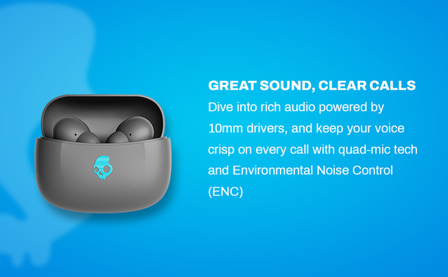 Immersive Skullcandy Sound 10mm drivers deliver bold, punchy bass and crisp highs for an elevated audio experience across music, movies, and podcasts.