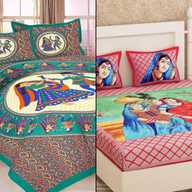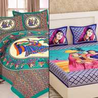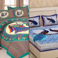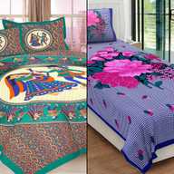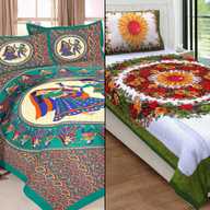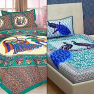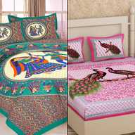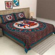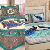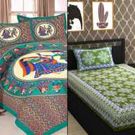 METRO LIVING Cotton Double Flat 144 TC Jaipuri Prints Bedsheet (Pack of 1, Green)