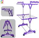 Unizone Steel, Plastic Floor Cloth Dryer Stand Foldable Cloth Drying Stand 2-Tier | Cloth Stand Steel with Wave Wings & Wheels (2 Tier)