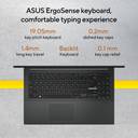 This laptop's ASUS ErgoSense keyboard provides an incredibly pleasant experience thanks to precisely calculated key bounce and travel. As a result, using this keyboard, which recognises your natural typing style, is simple.