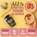 | Key Features | - 100% Natural & Raw – Unprocessed, preservative-free chia seeds sourced from trusted farms., Rich in Omega-3 Fatty Acids – Promotes heart health, reduces inflammation, and boosts brain function., High Fiber Content – Supports digestion, weight management, and helps keep you full longer, Excellent Source of Plant Protein – Ideal for muscle repair and vegetarian/vegan diets., Instant Energy Booster – Contains slow-digesting nutrients for sustained energy release., Neutral Taste – Easily blends into water, juice, smoothies, oatmeal, or any meal prep., Soak & Use Format – Soaks quickly in water to form a gel, ideal for detox drinks and chia pudding., Hygienic, Food-Grade Packaging – Packed in a resealable jar to lock in freshness and avoid moisture., Keto-Friendly & Gluten-Free – Perfect for low-carb, gluten-free, vegan, and diabetic diets.