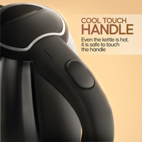 The kettle features a cordless design with a 360-degree swivel base, allowing you to effortlessly lift and replace the kettle from any angle. The cordless pot seamlessly connects to the swivel base, ensuring that the power cord stays neatly tucked away and preventing any tangling or clutter on your countertop.