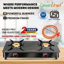 Greenchef Ebony Pro 2BR ( Hose Pipe + Lighter ) Glass Manual Gas Stove (2 Burners)