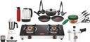 Pigeon Family Kitchen Set with Mixer, Cookware Set, Kettle, Water bottle, Cooker, Glass Manual Gas Stove (2 Burners)
