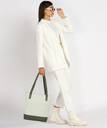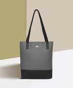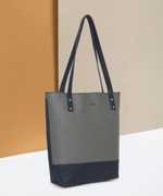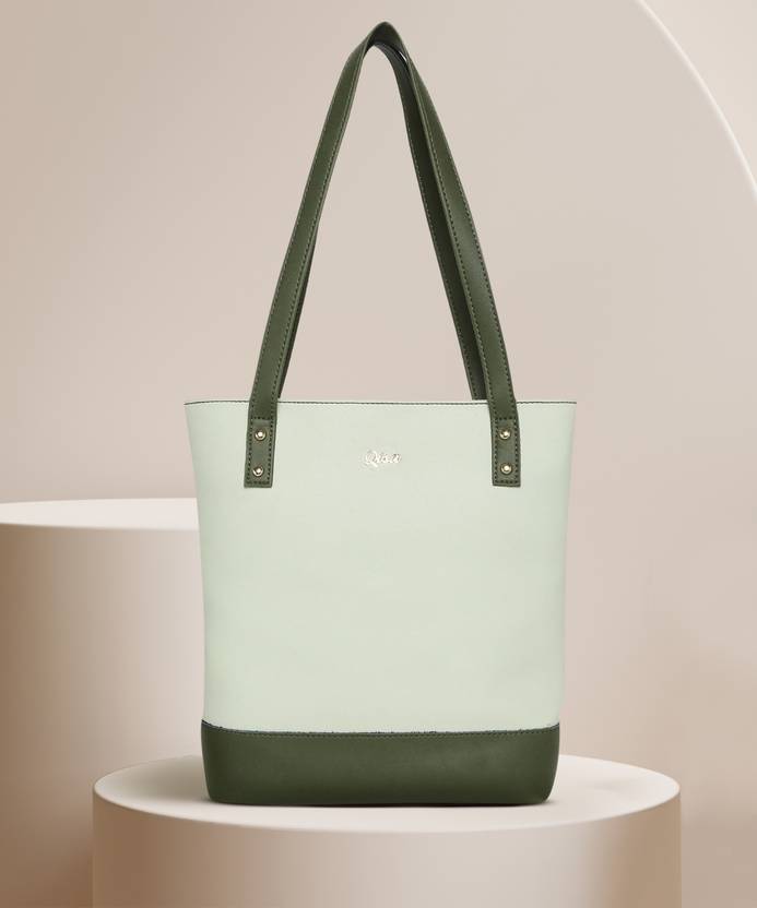 Flaunt off your playful side with this color blocked mint tote bag by Qisa. Bedecked with metallic embellishments on soft faux leather, this bag also flaunts spacious compartments. This piece definitely deserves a place at the top of your must-have accessories!