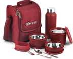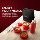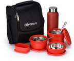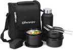 Oliveware Teso Pro Lunch Box | 3 Stainless Steel Containers | Plastic Pickle Box | Steel Spoon & Fork | Insulated Fabric Bag | Leak Proof | Microwave Safe | Full Meal | Easy to Carry | Black 4 Containers Stainless Steel Office Lunch Box (1470 ml, Microwave Safe)