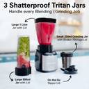 Safety and quality are paramount in the Hamilton Beach Smoothie Blender. It includes three jars - a 1-litre multi-blend jar, a 500 ml travel jar with a lid, and a 250 ml grinding jar with a shaker lid. These shatterproof, BPA-free Tritan jars, imported from the USA, guarantee no leaks or dents. The transparency of the jars allows you to monitor your blending and grinding, ensuring the perfect consistency every time without the need to open the lid.