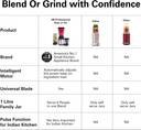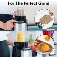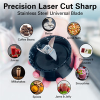 The blender is equipped with a laser-cut, sharp stainless steel universal blade, ideal for a variety of ingredients. From coffee beans and nuts to spices, this hardened stainless steel blade can handle it all effortlessly. Its versatile design eliminates the need to change blades, whether you're blending or grinding.
