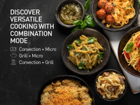 Discover versatile cooking with the combination mode. Uses microwave + grill/convection for faster cooking, crispy textures, and juicy interiors—perfect for baking, roasting, and grilling!