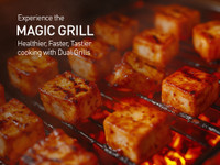 The dual power of the top and back grills works together to make food crispier on the outside and deliciously juicy on the inside