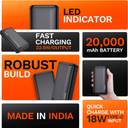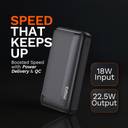 MarQ by Flipkart 20000 mAh 22.5 W Power Bank (Black, Lithium Polymer, Power Delivery 3.0, Quick Charge 3.0, Fast Charging for Earbuds, Mobile, Smartwatch, Speaker, Tablet, Trimmer)