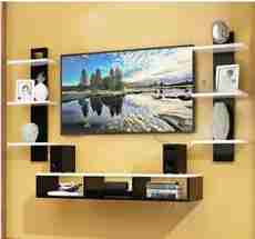 INDIAN DECOR SZY TV Entertainment Unit Set Top Box Wall Stand Home Decor Wall Shelf Wooden Racks Wall Decor Black & White 1 Set Top Box Wooden Wall Shelf Number of Shelves - 9, Black, White