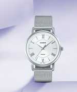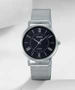 Mineral Glass::Regular timekeeping: Analog: 3 hands (hour, minute, second)::Accuracy: 20 seconds per month