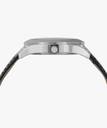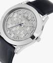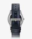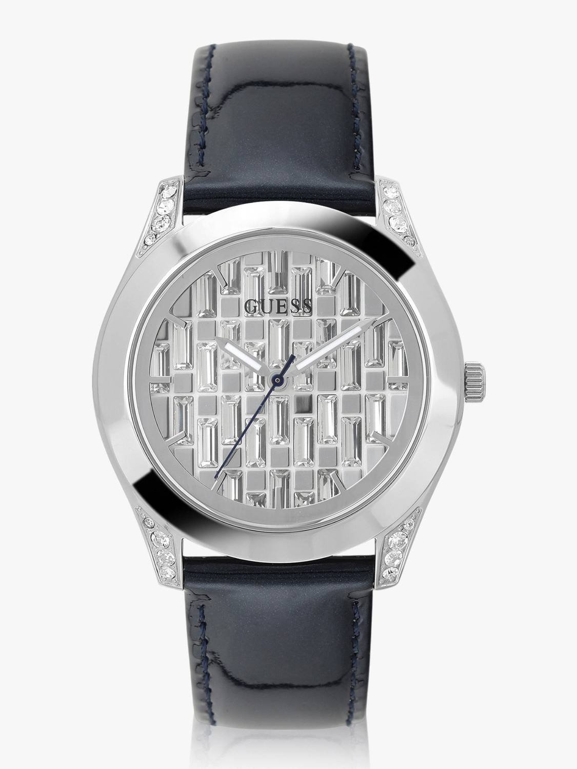 Guess Clarity Women 39mm Round Stainless Steel Silver case watch with Silver dial and Blue Leather Strap.