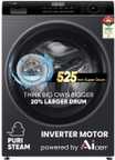 Haier 8 kg AI with Inverter Motor, IPuristeam and Refresh Function, Anti Bacterial Technology, Super Drum 525mm with Custom Wash Programs Fully Automatic Front Load Washing Machine Black, White (HW80-IM12929C)