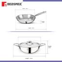 BERGNER BE Bergner Essentials Triply 22cm (2.3 L) Kadai & 22cm (1 L) Frypan - Induction Bottom Cookware Set (Triply, 3 - Piece)