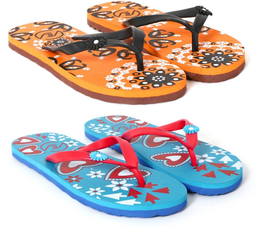 Womens Comfort Stylish colorful Printed Flip Flops combo (Pack Of 2 pairs) Women Flip Flops (Multicolor , 5)