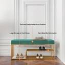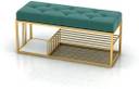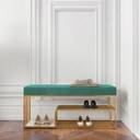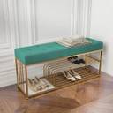 FlipsShoppee 2-Tier Metal Shoe Rack Bench With Cushion Seat And Golden Iron Frame Metal Shoe Rack (Green & Gold, 3 Shelves, Pre-assembled)