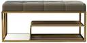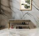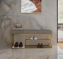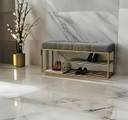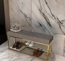 FlipsShoppee 2-Tier Metal Shoe Rack Bench With Cushion Seat And Golden Iron Frame Metal Shoe Rack (Grey & Golden, 3 Shelves, Pre-assembled)