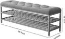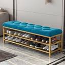 FlipsShoppee 2-Tier Metal Shoe Rack Bench With Cushion Seat And Golden Iron Frame Metal Shoe Rack (Blue Gold, 3 Shelves, Pre-assembled)