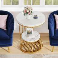 FlipsShoppee Round Coffee Table, Circle with Modren Storage Tea Table Faux Marble Top Engineered Wood Coffee Table (Finish Color - Blk & white, Pre-assembled)