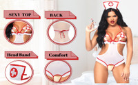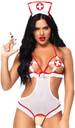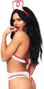 This outfit features a playful colour scheme, highlighting the classic nurse aesthetic with a twist. The set includes a halter-style babydoll top with strategic cutouts and sheer panels, creating an enticing peek-a-boo effect. The matching thong panty completes the look, ensuring you feel confident from every angle. Accentuating the fantasy, this ensemble comes with a nurse's cap adorned with a cross emblem, adding an authentic touch to your role-playing adventures.