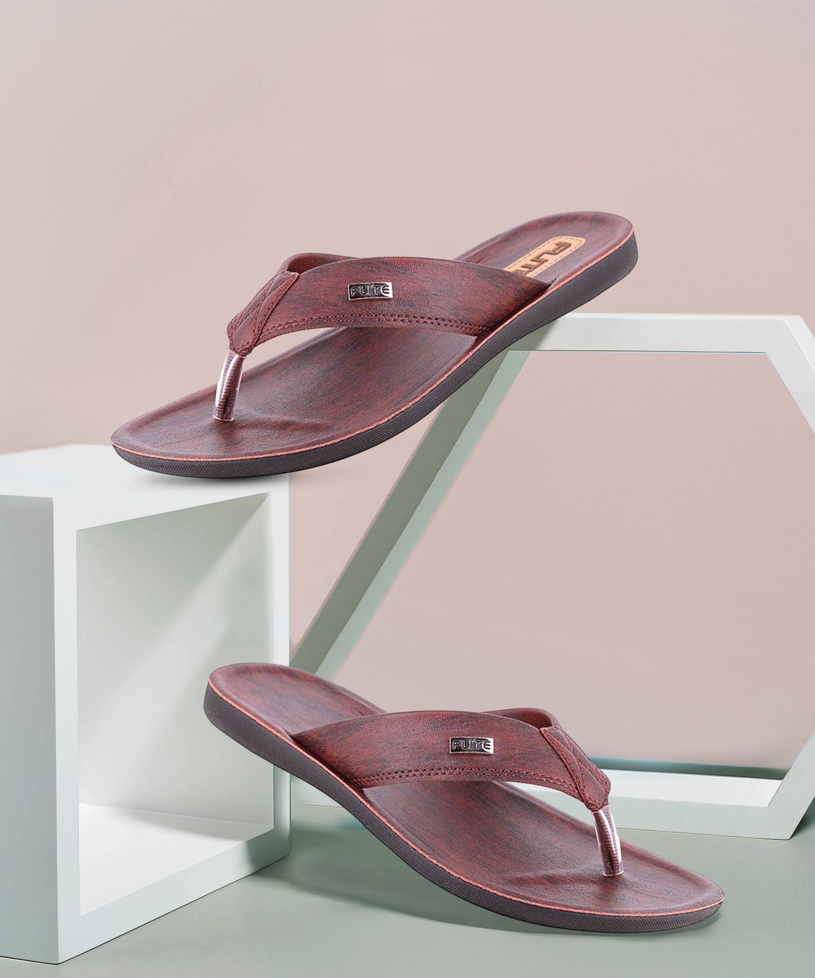 FLITE Men Flip Flops (Brown , 8)