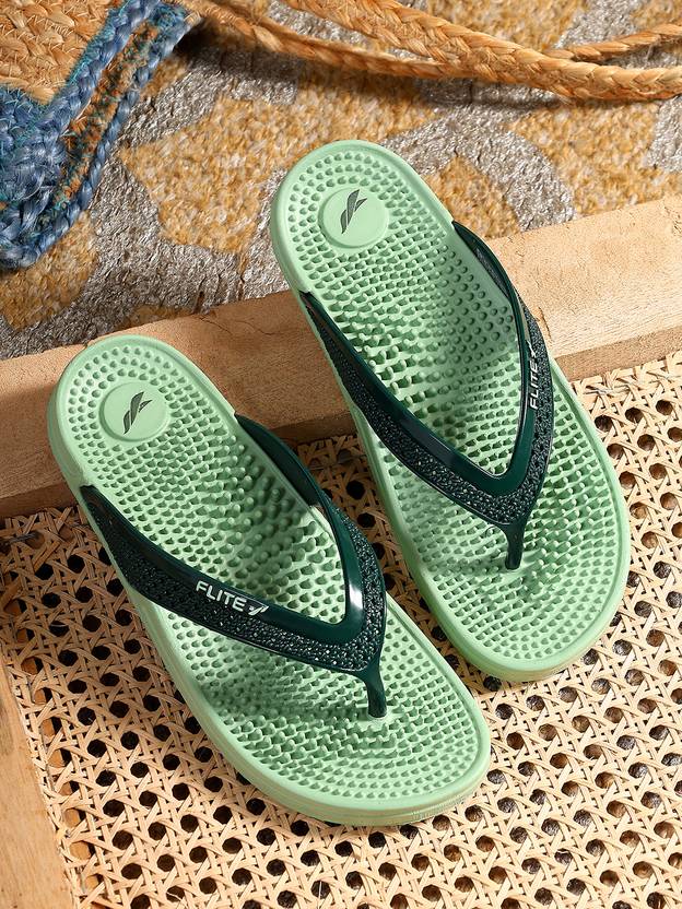 The FL 487 slipper for women in an elegant pista shade combines a PVC upper and EVA sole for flexibility and comfort throughout the day.