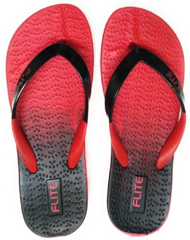 FLITE WONEN'S SLIPPERS RED-BLACK Women Flip Flops (Red, Black , 5)
