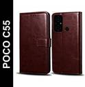 Flocculent Flip Cover for POCO C55 (Brown, Shock Proof, Pack of: 1)