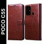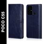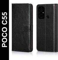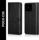 Flocculent Flip Cover for POCO C55 (Black, Shock Proof, Pack of: 1)