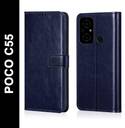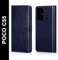 Flocculent Flip Cover for POCO C55 (Blue, Shock Proof, Pack of: 1)