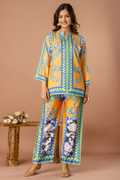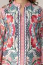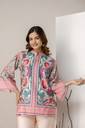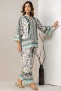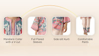 Boasting a modern design, this set contains a kurti that is styled with a straight cut, offering a sleek and contemporary profile. The Mandarin neck lends a touch of sophistication, while the three-quarter bell sleeves add a gentle flair, ensuring both comfort and style. In addition, the side slits provide ease of movement, making this set practical for everyday wear. The hip-length kurti is complemented by these matching pants, which complete this set with simplicity and elegance.