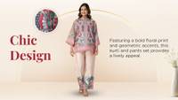 Featuring an elegant printed pattern, this women’s kurti and pants set brings a graceful charm to your wardrobe. The delicate detailing adds visual interest while maintaining a refined appearance, making it a timeless addition for those who appreciate understated style.