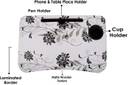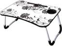 Floresta Wud Floresta Wud Folding Table With Cup Holder Wood Portable Laptop Table (Finish Color - Black And White Floral, Pre Assembled)