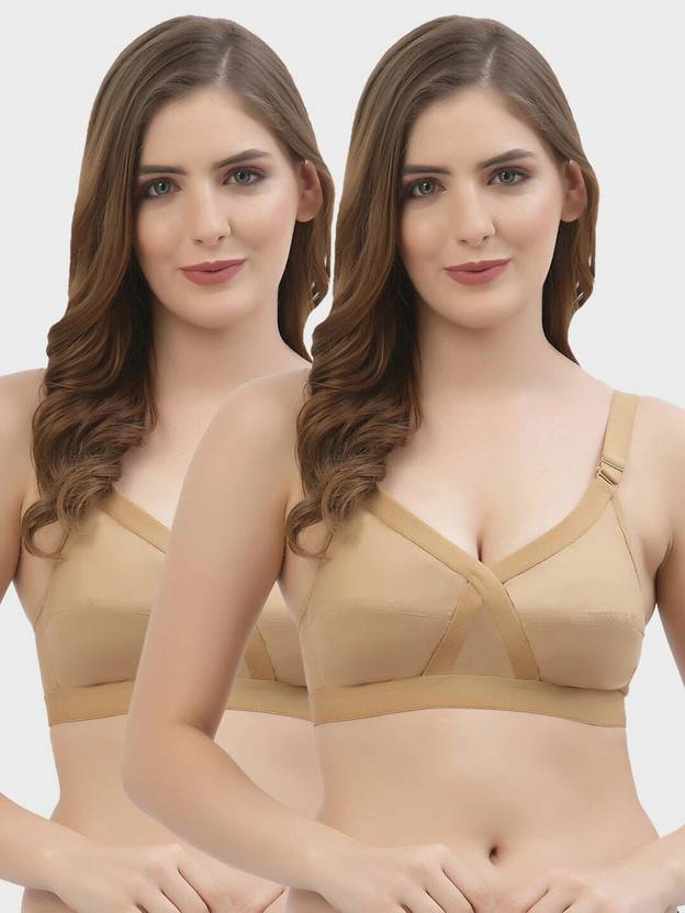 Women's Cotton Bra, Non Padded & Non-Wired Cut & Sew Double Layered Cups, Full Coverage, Regular Adjustable Wide Straps, 3X4 Back Hooks & Eye, Back Closure, B/D Cups are Available, 32 To 44 Sizes are Available. Style Code Crossfit.