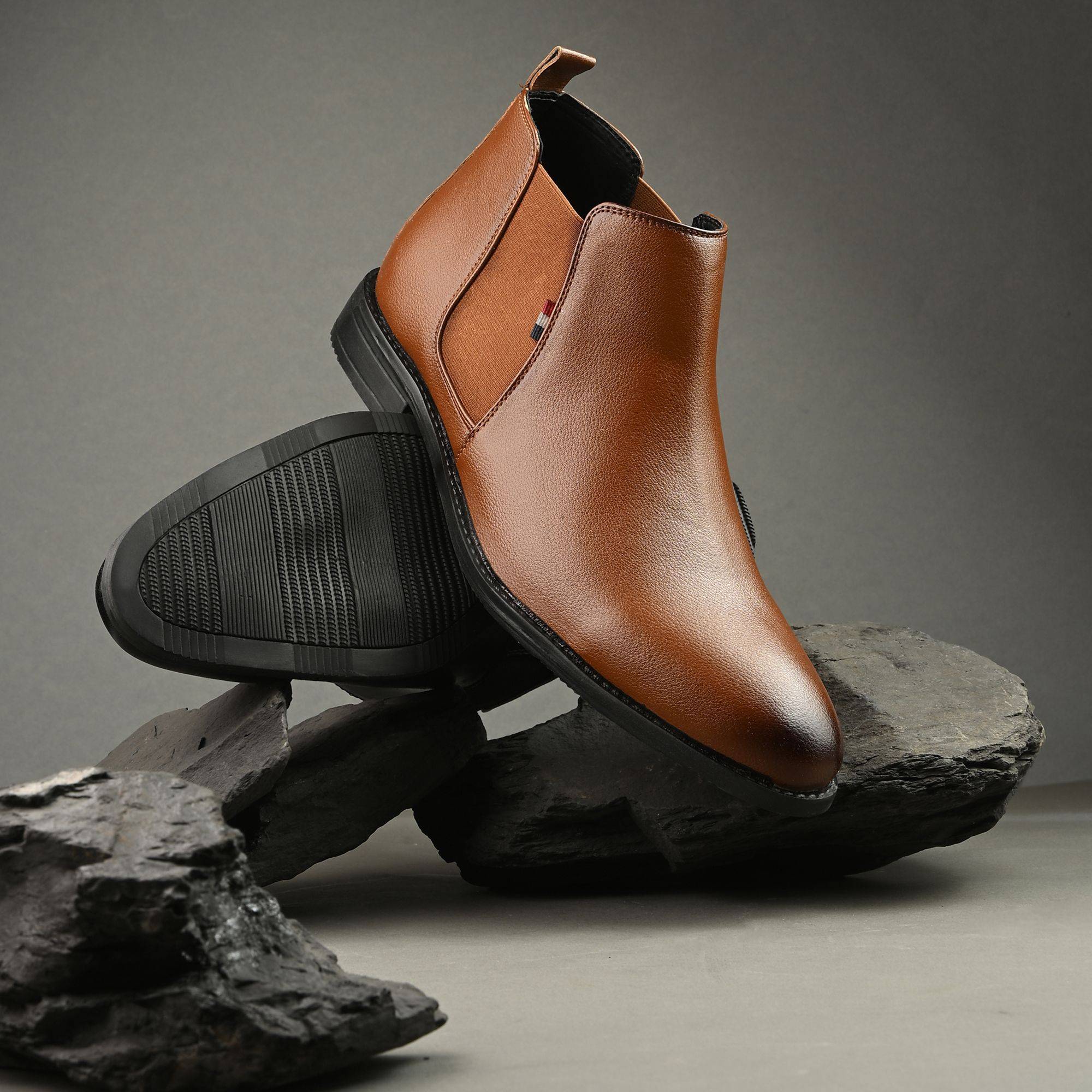 Stylish Tan Synthetic Leather Chelsea Boots For Men