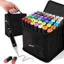 DUAL TIPS: twin tipped highly pigmented oil-based markers has 48 vibrant colours with colour code. Use the bullet tip for colouring, shading, and blending, and the calligraphy tip for writing. Bullet and calligraphy tip are fast drying and great for projects., FIND COLORS FAST: The colour code on the lid of the marker helps you find any marker in a flash. As a bonus, the carrying case keeps your non-toxic markers organized and portable for any colouring adventure projects!